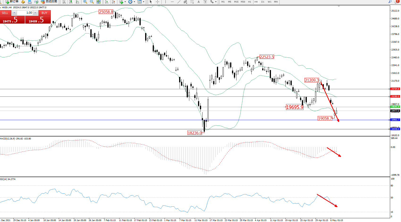 香港恒生指数5月10日(周二)收盘下跌368.27点,跌幅1.84%,报19633.69点;港股主要指数全天呈下跌走势,尽管盘中跌幅均有收窄,但三大指数依旧维持大跌行情。恒生科技指数跌3.22%,盘初一度暴跌近7%。大型科技股拖累大市走低,京东大跌8.2%,百度跌超7%,阿里巴巴、美团、腾讯等均下挫;市场担忧滞胀风险,黄金、石油、煤炭、燃气等大宗概念股齐挫,今日南下资金逆势净流入74.87亿港元,大市成交额为1436亿港元。摩根大通发表报告指,香港银行股今年首季的经营业绩好于预期,其中中银香港(2388.HK)及渣打(2888.HK)较预期为佳,而汇丰控股(0005.HK)及恒生银行(0011.HK)的资本/股息派发则令人失望。该行表示,在香港第五波疫情过后,在利率前景改善和经济活动复苏推动下,预计未来数个季度港银的经营业绩将有所改善,该行重申对行业未来12至18个月的正面看法,选股顺序依次为中银香港、恒生、渣打及汇控。摩通表示,重申对中银香港“增持”评级及目标价35.4港元,维持对汇控“增持”评级及目标价71港元。该行重申对渣打“增持”评级及目标价70港元。