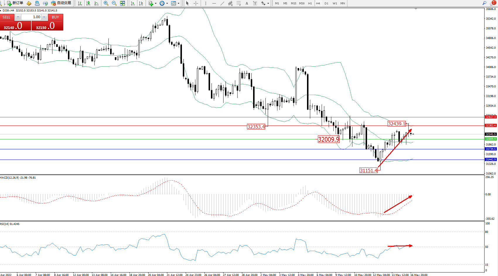 道琼斯指数5月16日(周一)收盘上涨26.76点,涨幅0.08%,报32223.42点;】美股收盘,三大股指全天震荡,道指平收,5月份纽约州制造业活动意外收缩,引发了对经济活动放缓可能会使美联储政策路径复杂化的担忧。除了这些增长担忧,纽约市新冠疫情警戒级别可能会调整至高水平,可能会让其考虑恢复在公共场所的强制佩戴口罩规定;在物价压力居高不下并且借贷成本上升的背景下,经济下行风险仍然是市场最主要的担忧。
