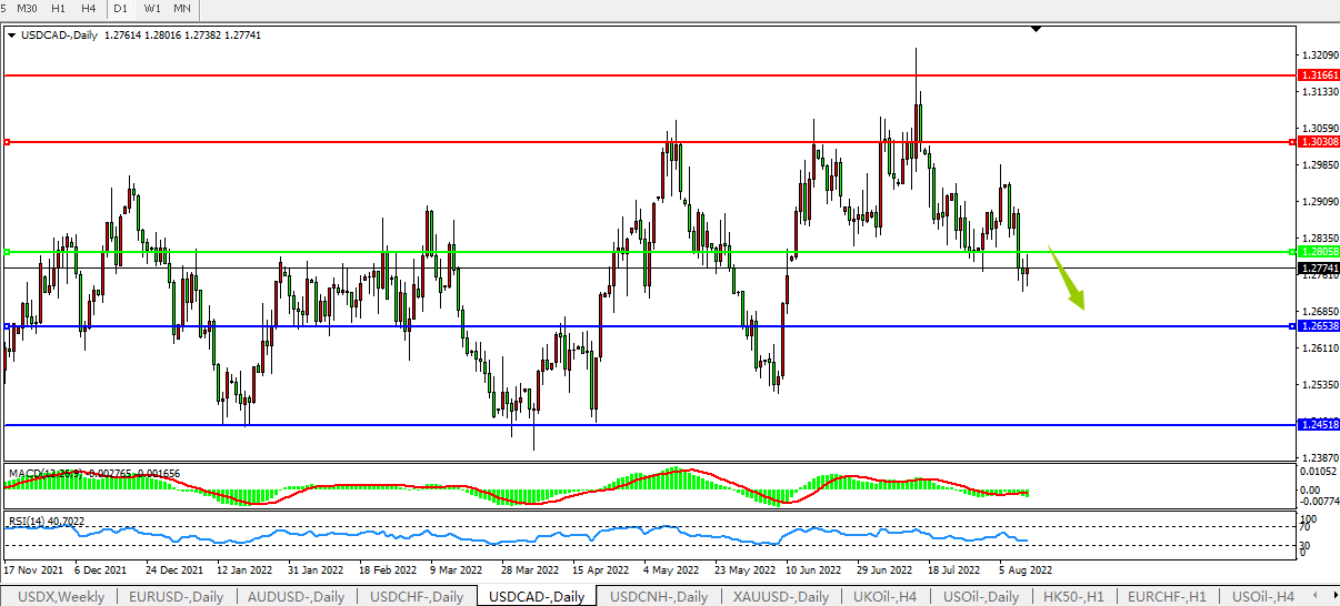 日线图看:短期汇价反弹不改弱势,MACD运行于0轴下且量能持续放量,RSI持续小幅走弱,预计短期汇价大概率将进一步下行。