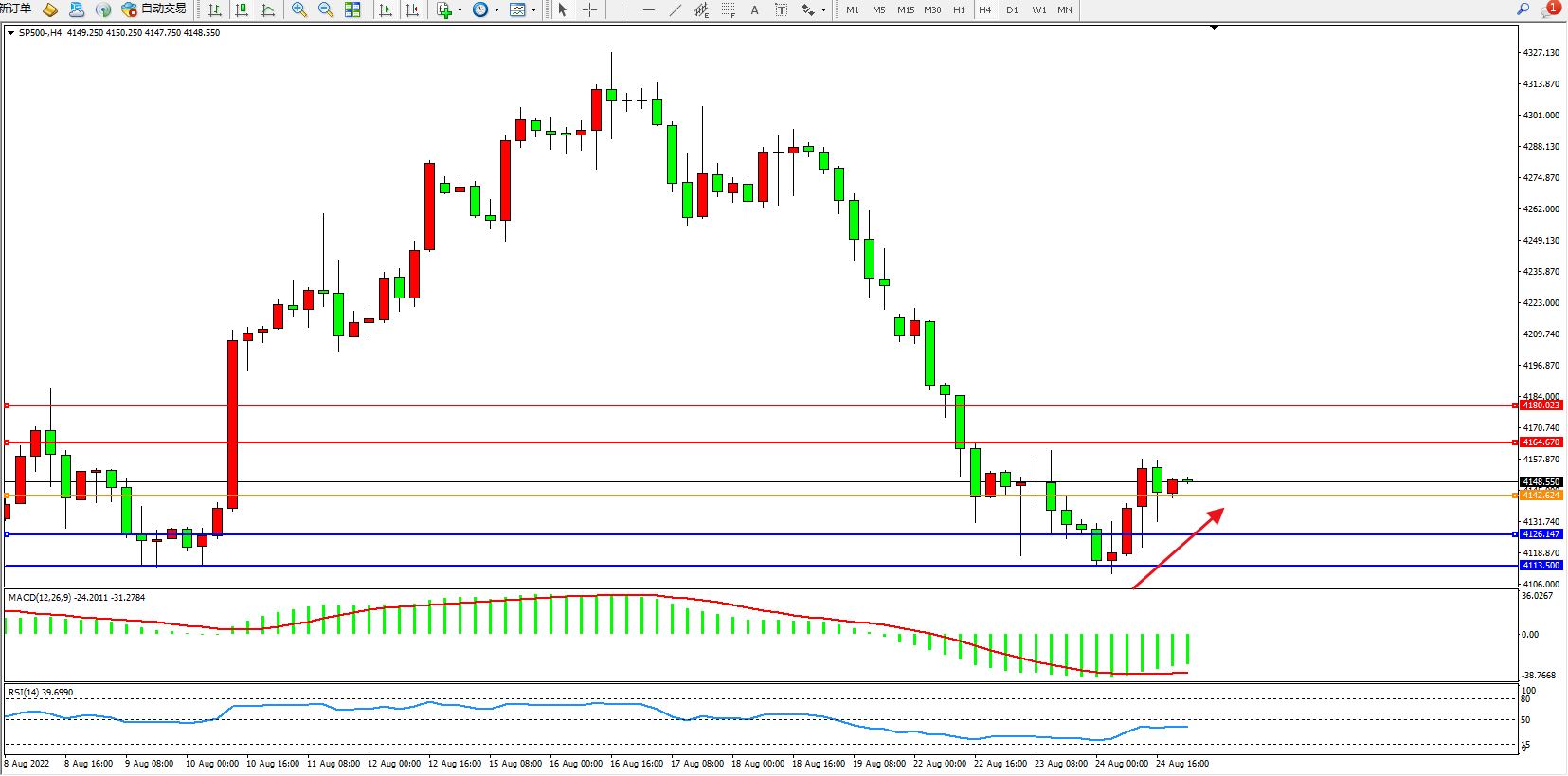标普500指数8月24日(周三)收盘上涨12.77点,涨幅0.31%,报4141.50点;美国7月份工厂核心生产资料订单增幅超过预期,表明尽管利率上升且市场对经济走弱感到担忧,但设备需求持续。国防飞机和零部件的订单下降了近50%,拖累了耐用品的整体指标。