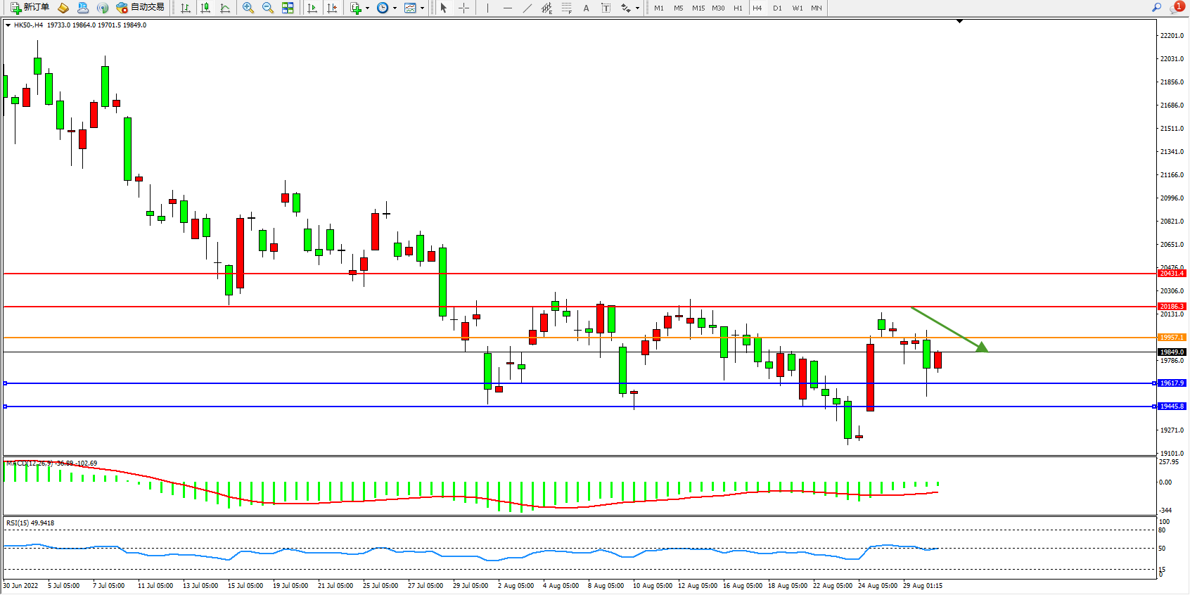 香港恒生指数8月30日(周二)收盘下跌74.19点,跌幅0.37%,报19949.03点;港股早盘大跌,午后三大指数逐步回升但仍收跌。近日在2万点徘徊,恒生科技指数跌0.51%。大型科技股跌多涨少,香港银行股、中医药股表现活跃。南下资金净流入14.54亿港元,大市成交额961亿港元。