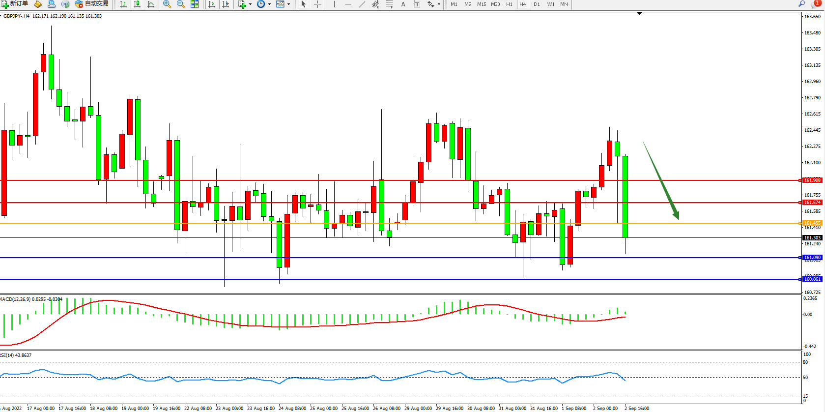 4小时图看:长时间宽幅震荡,空头急速下挫,短期或维持区间整理,MACD指标处于0轴附近弱势震荡,RSI指标处于50均衡线下侧徘徊下移;