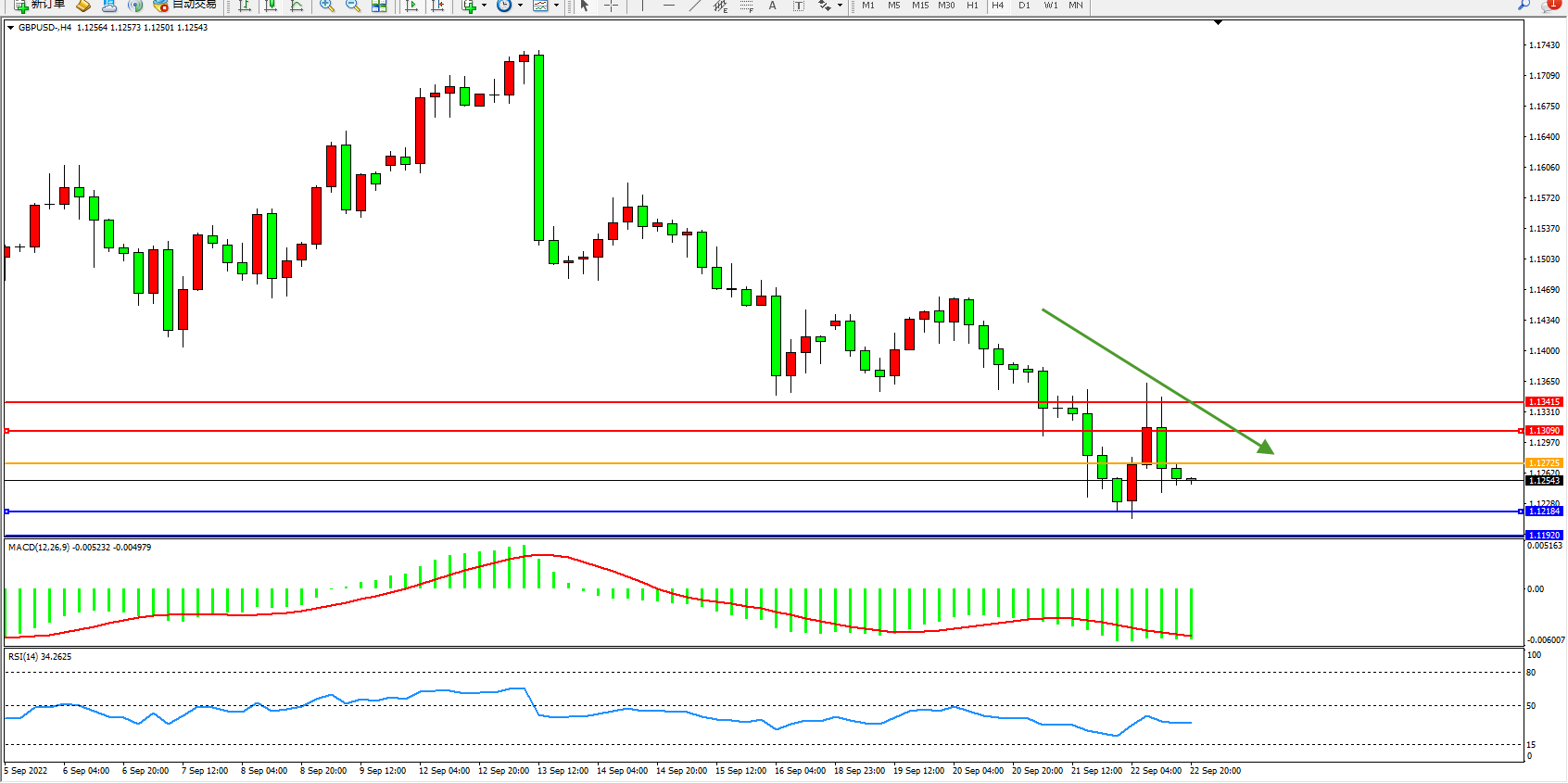 英镑美元GBPUSD ——4小时K线图显示:
