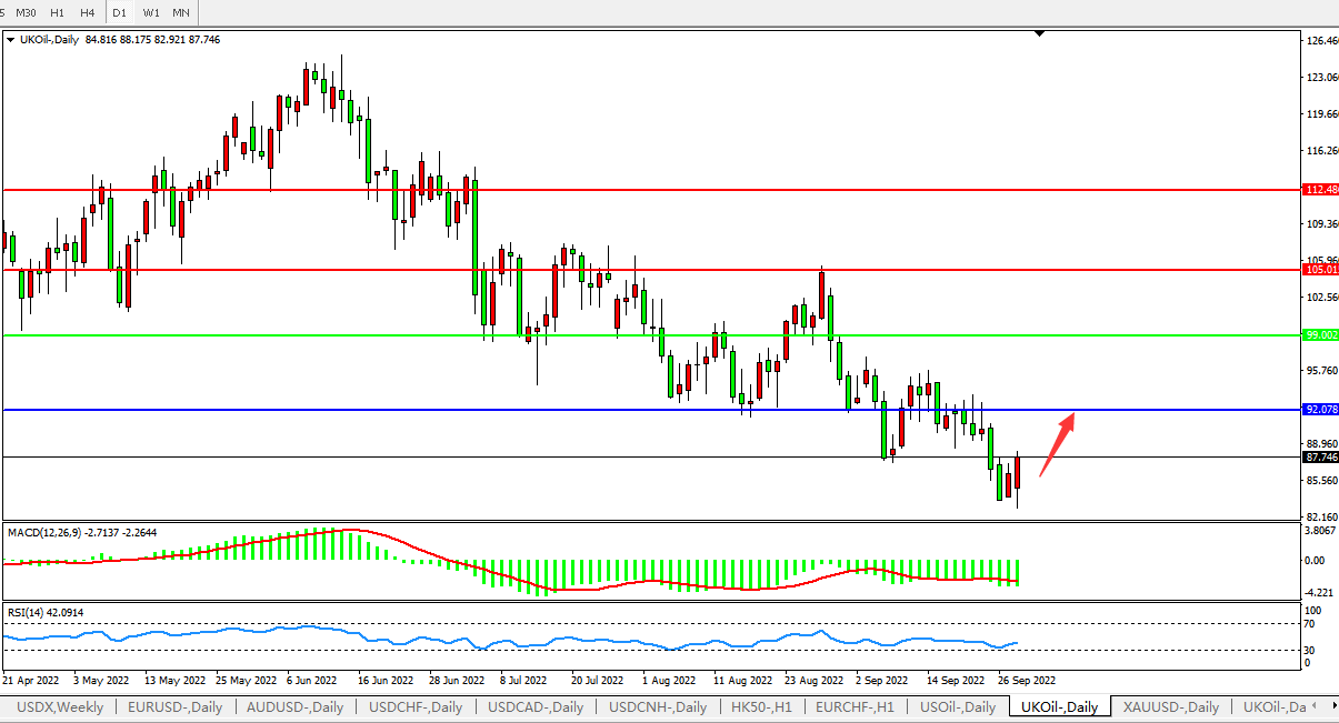 日线图看:短线价格继续快速小幅反弹,中期图形结构依旧衰败等待修正信号, MACD量能柱0轴下开始缩量,RSI开始拐头,短期油价超跌反弹需求仍存。