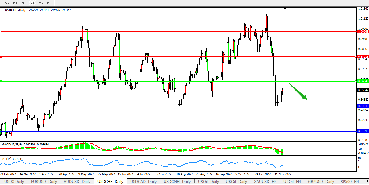 交易策略:0.9600下方看跌,目标0.9400、0.9200