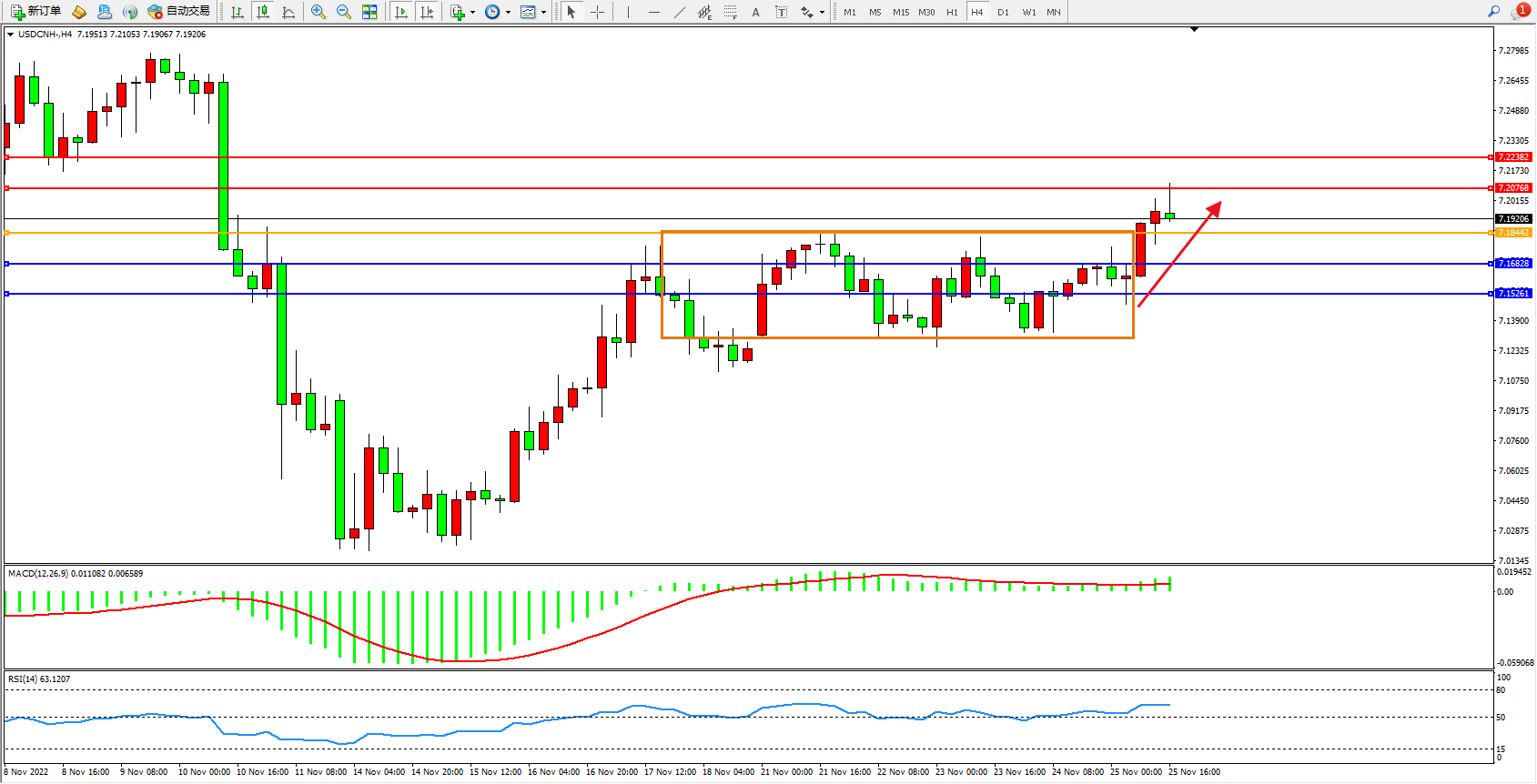 美元兑人民币维持7.19206附近震荡,中国人民银行决定于2022年12月5日下调金融机构存款准备金率,本次下调后,金融机构加权平均存款准备金率约为7.8%。