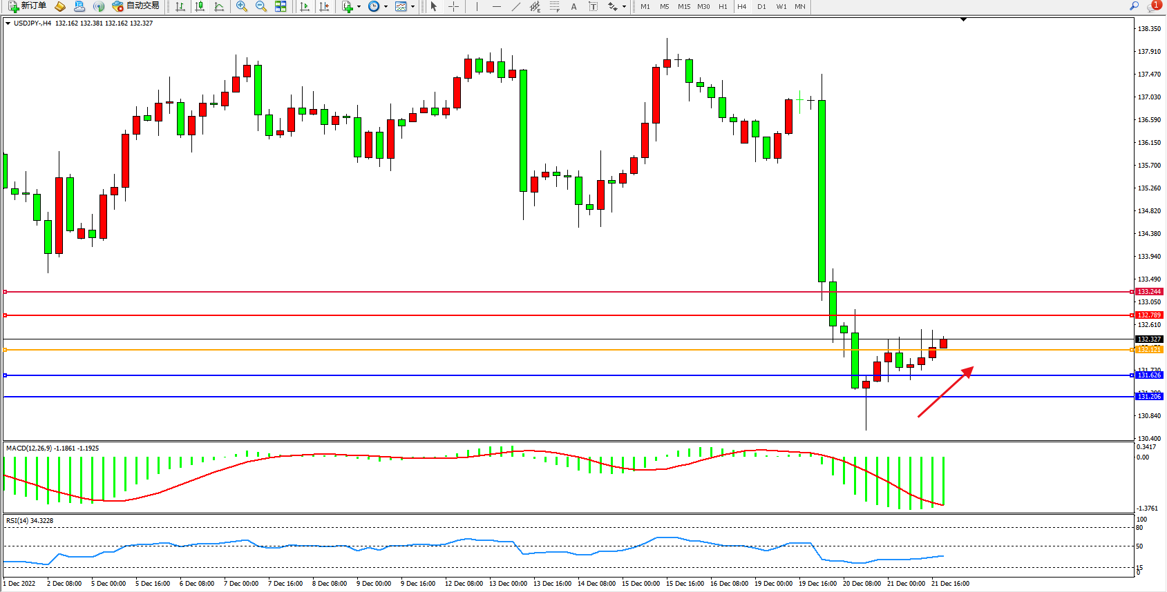 交易策略:132.121上方看涨,目标132.789、133.244