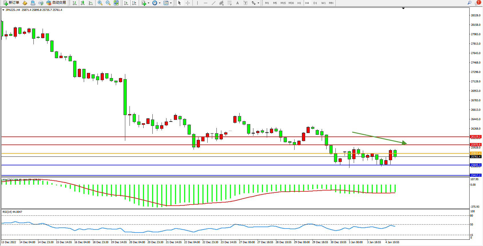 日经225指数1月4日(周三)收盘下跌382.00点,跌幅1.46%,报25712.50点。债券市场对日本央行政策转向的押注正在加大,全球基金在2022年的最后几天对日本债券的抛售量创历史新高。有关日本央行退出宽松货币政策的猜测更有可能进一步升温,日本央行将不得不继续购债以遏制收益率的上升。