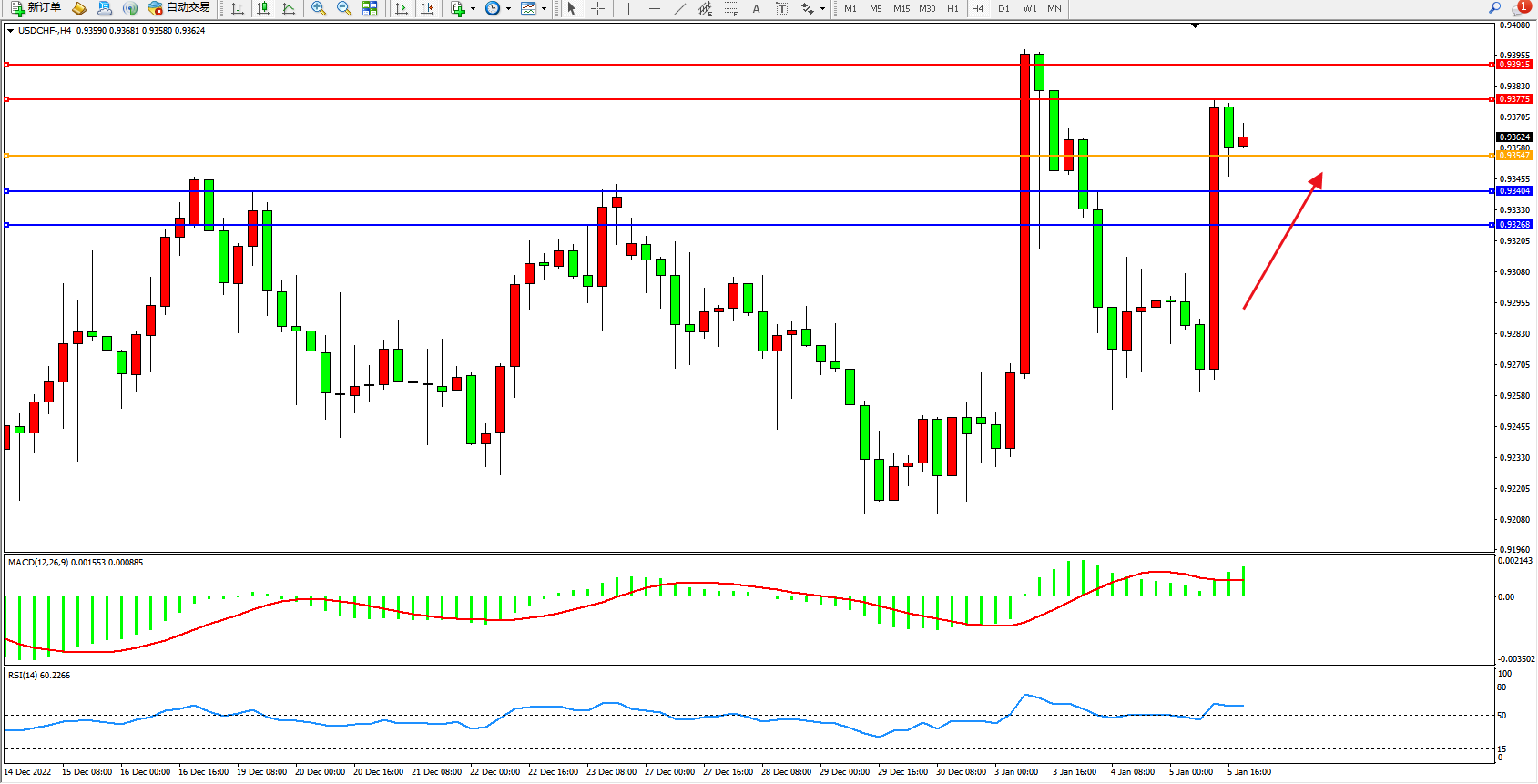 美元兑瑞郎维持0.93624附近震荡,随着美联储大幅加息,美元在2022年飙升。美联储官员在12月预测,联邦基金利率(目前处于4.25%-4.50%区间)将在2023年升至略高于5%的水平,并可能在那维持一段时间。