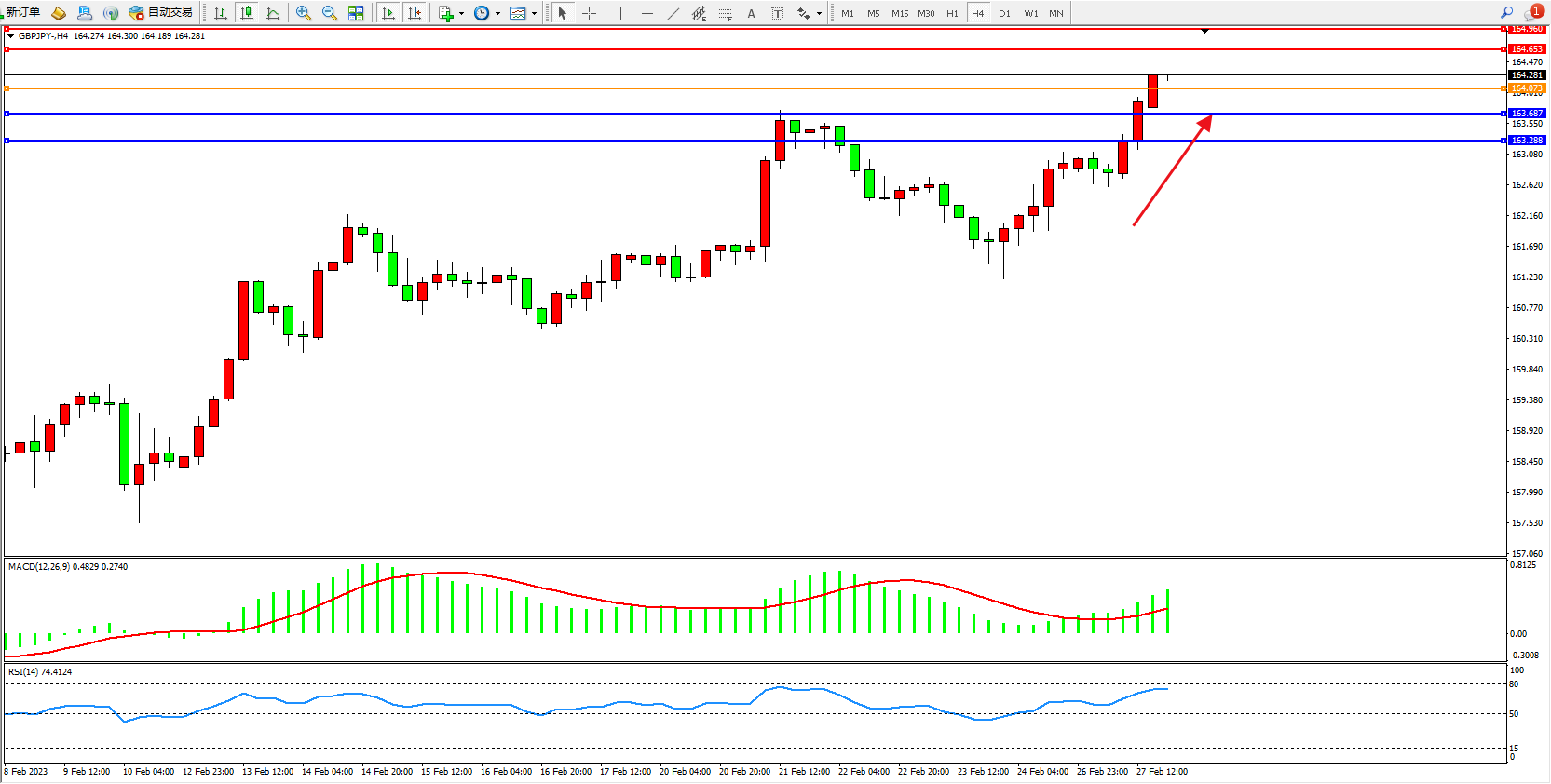 交易策略:164.073上方看涨,目标164.653、164.960