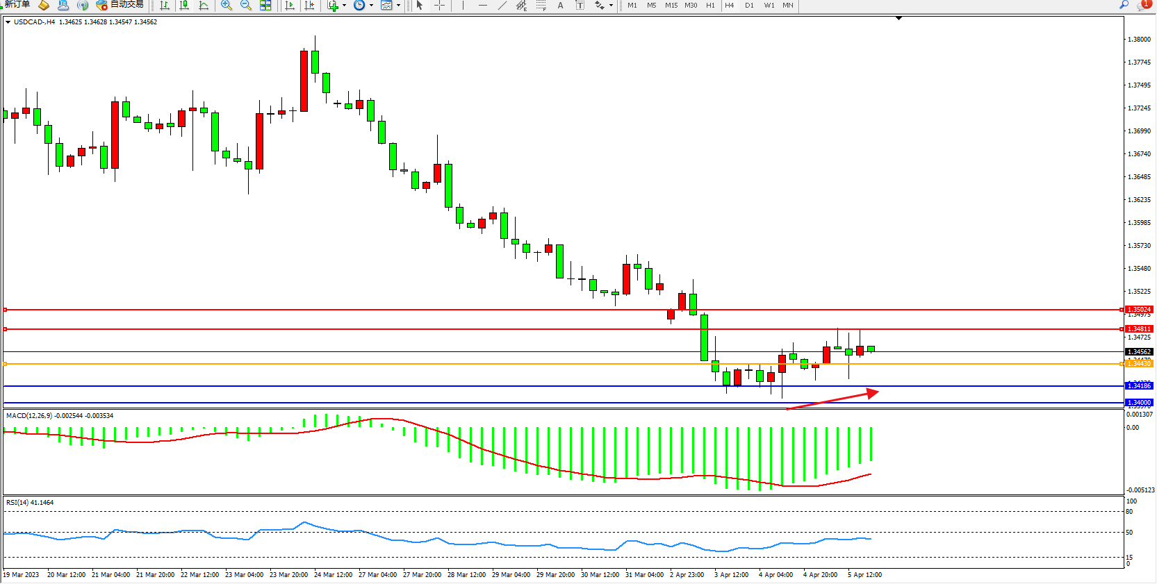 4小时图看:低位窄幅弱势整理缓慢上行,市场多头情绪开始逐渐涌现,短期多头开始缓慢向上移动中,MACD指标处于空头区域震荡上行,RSI指标处于50均衡线下侧徘徊;