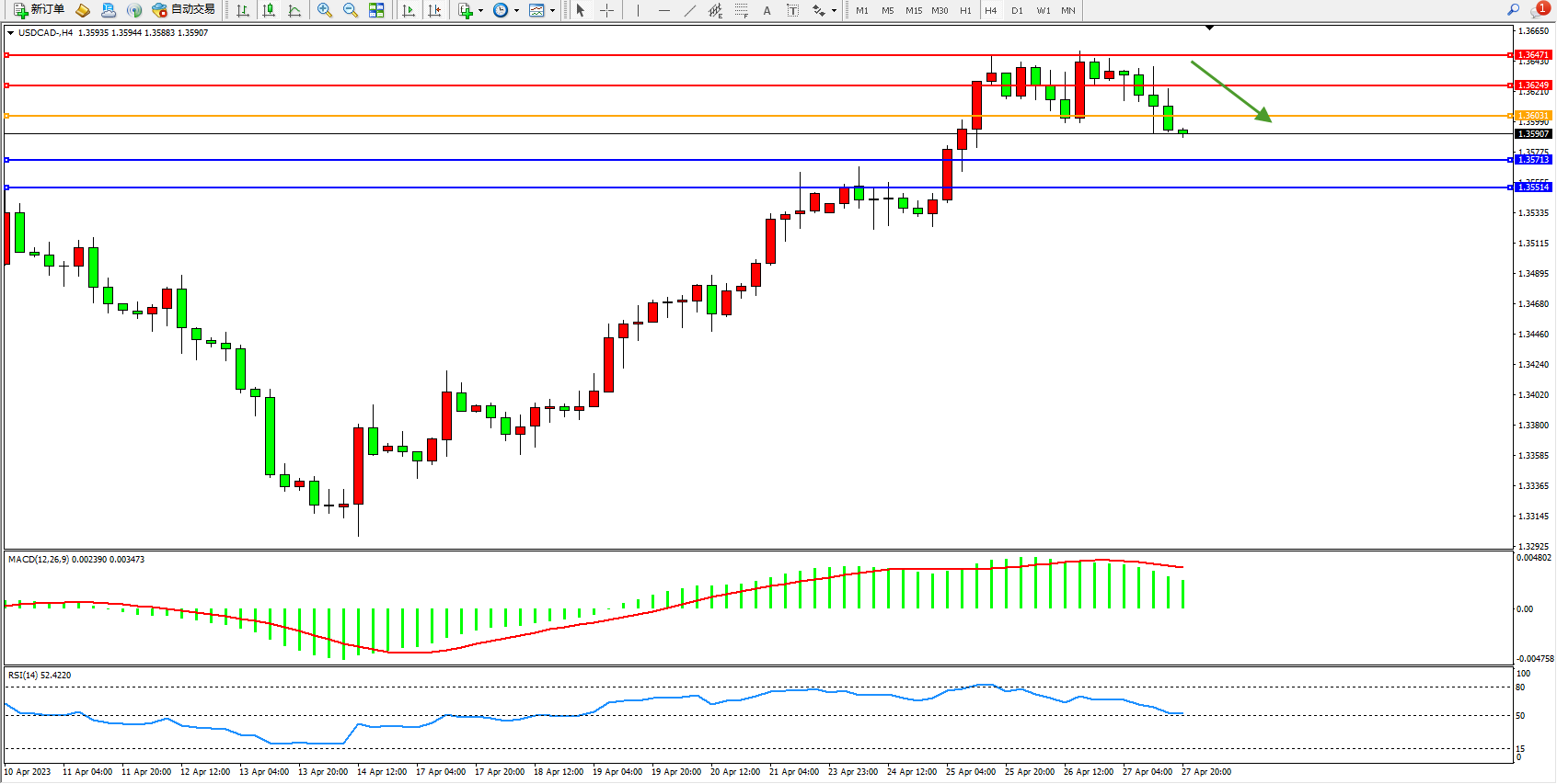 交易策略:1.36031下方看跌,目标1.35713 1.35514