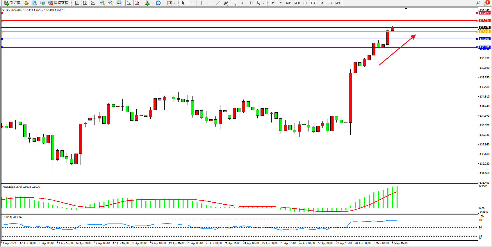 阻力位:137.731  138.020