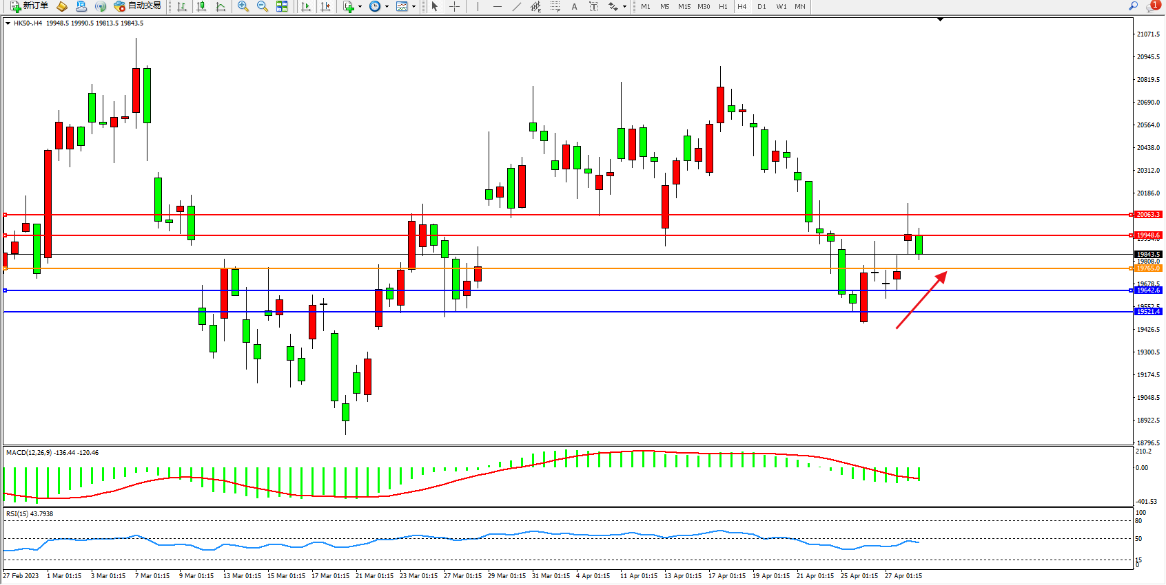 香港恒生指数4月28日(周五)收盘上涨54.29点,涨幅0.27%,报19894.57点;港股三大指数全天维持涨势,恒生科技指数早盘一度涨2.5%,收涨1.02%,恒指、国指分别上涨0.27%和0.4%,恒指2万点得而复失。4月收官,恒科指月跌超9%表现较差。大型科技股涨跌不一,网易涨2%,百度、阿里巴巴小幅上涨,南下资金全日净流入20.22亿港元,大市成交额为1015亿港元。