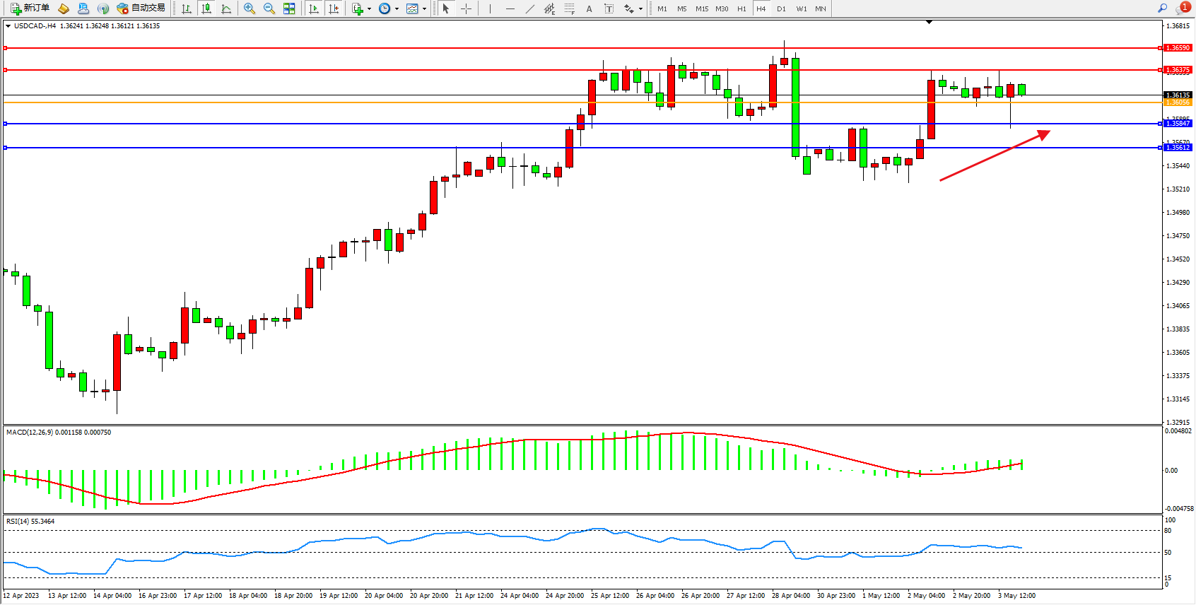 交易策略:1.36056上方看涨,目标1.36375  1.36590
