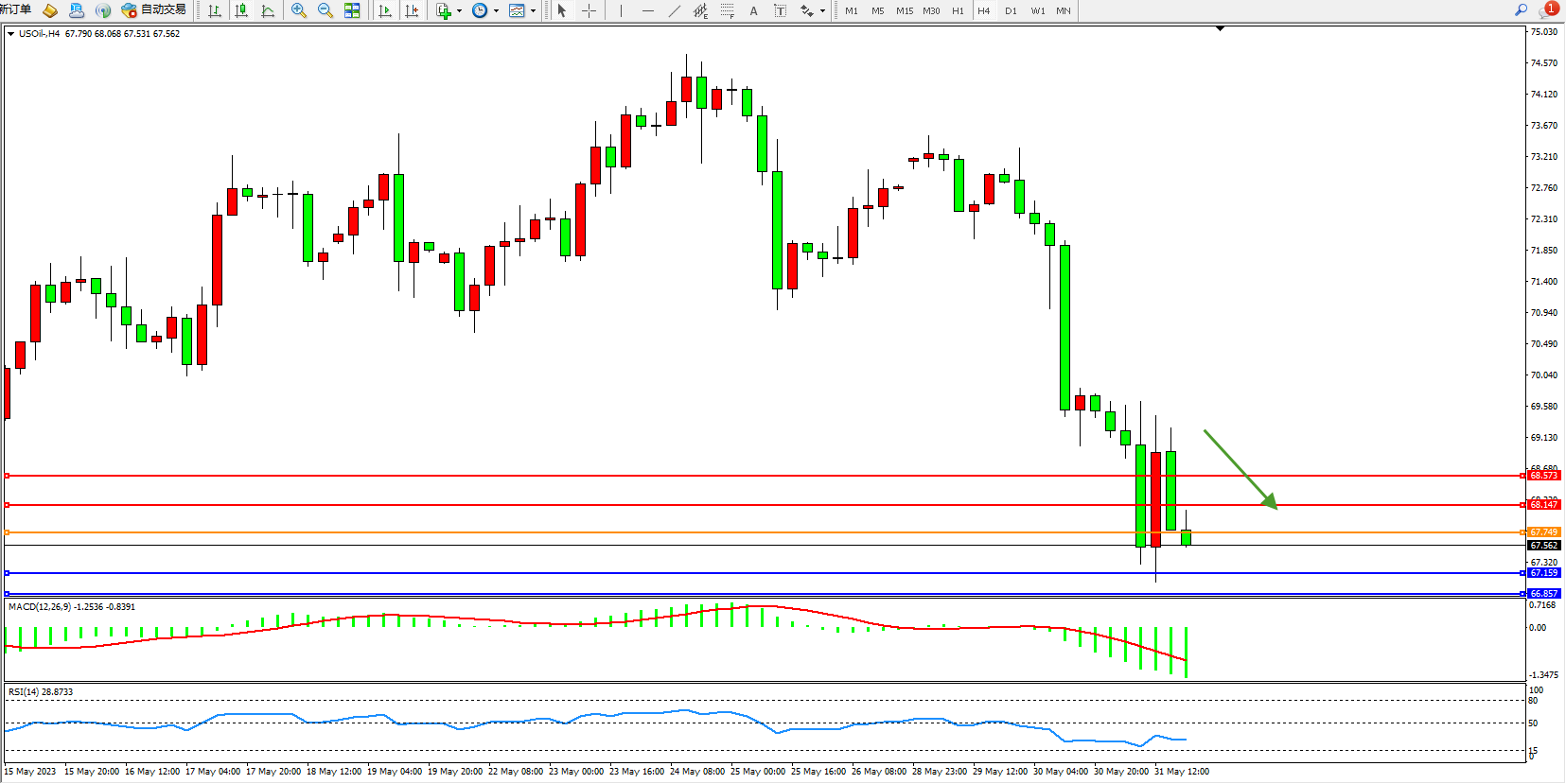 原油维持67.562附近震荡,国际原油大幅下降,当前宏观经济疲软成为油价上涨最大阻力,经济当前还处于低谷,预计原油还会继续偏弱运行。近期重点关注6月4日OPEC+部长级会议内容。