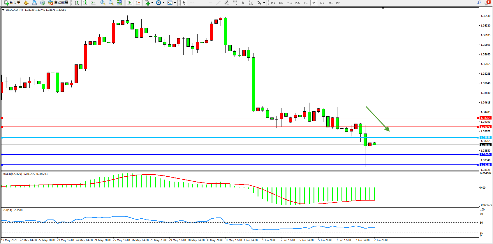 4小时图看:空头动力维持震荡下移,短期跌势或将延续,市场整体处于低位不断震荡下行中,MACD指标处于空头区域维持整理,RSI指标处于空头区域弱势整理;