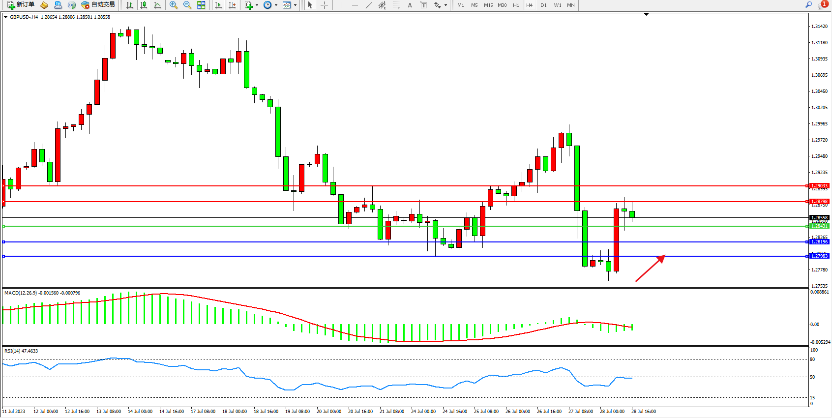交易策略:1.28431上方看涨,目标1.28798 1.29033