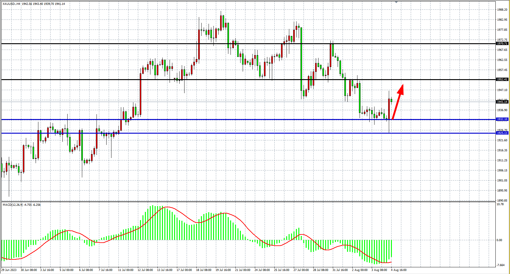 周五(8月4日)7月非农就业报告喜忧参半,黄金先跌后涨,重回1940美元