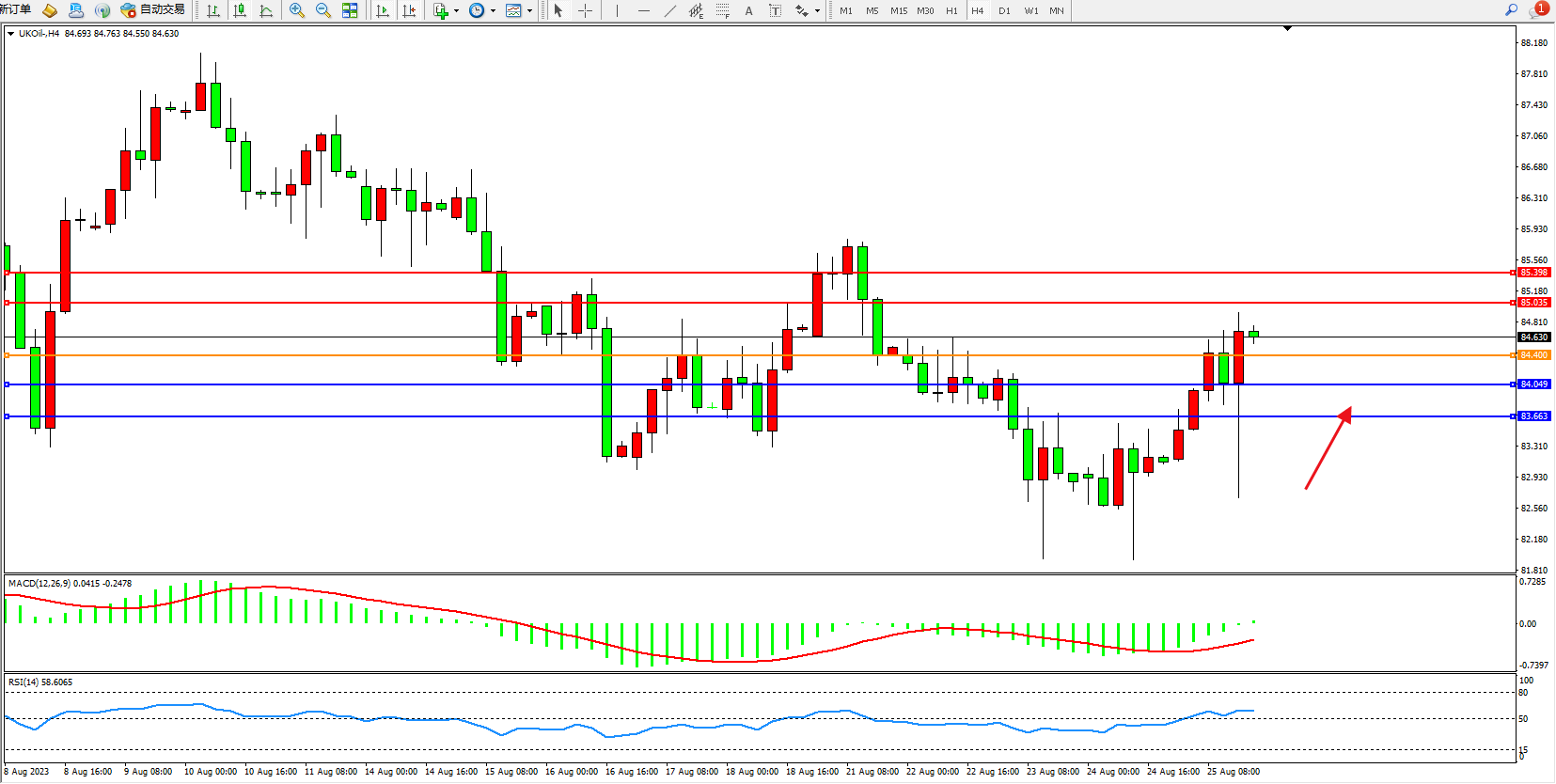 布油维持84.630附近震荡,摩根士丹利预计布伦特原油价格将在每桶80美元左右获得良好支撑,今年剩余时间内原油可能会保持短缺状态,然后在2024年初恢复小幅过剩。