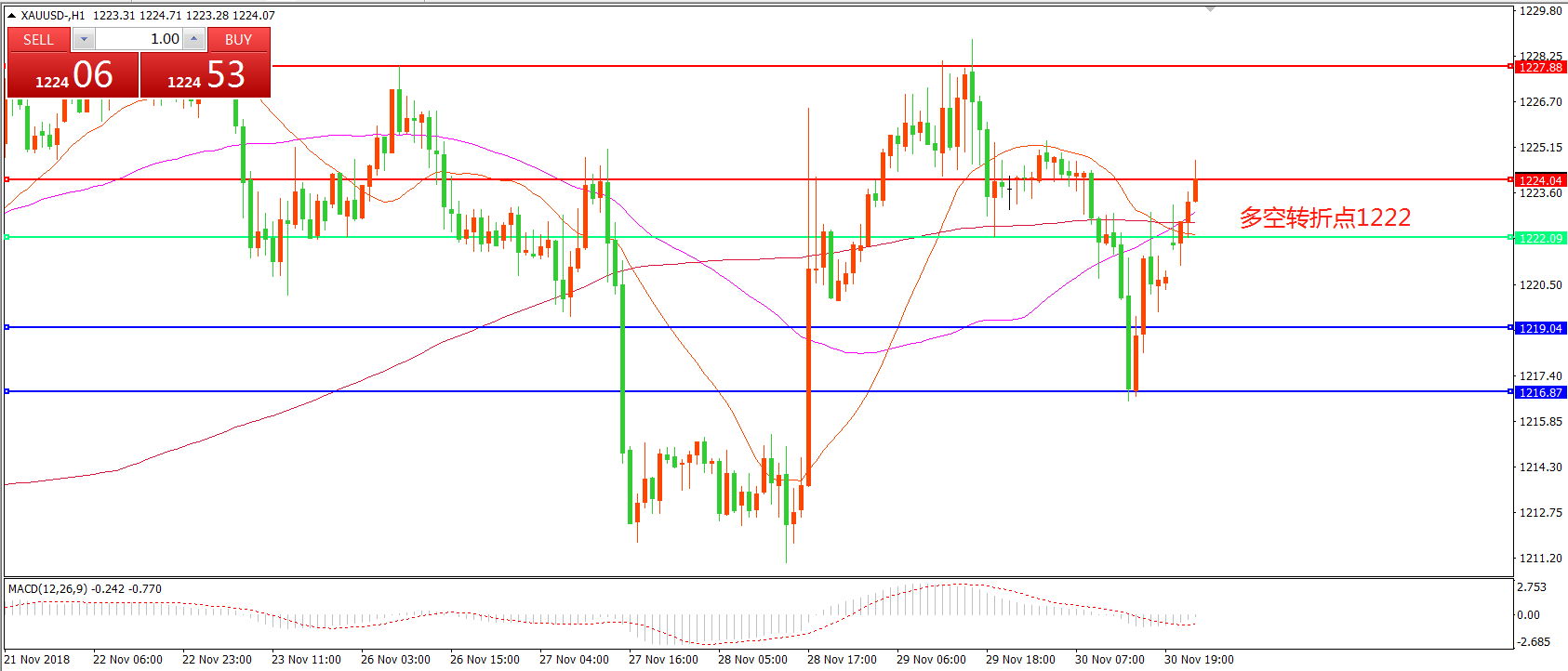 交易策略:在1222之上看涨,目标1224.00 1227.50