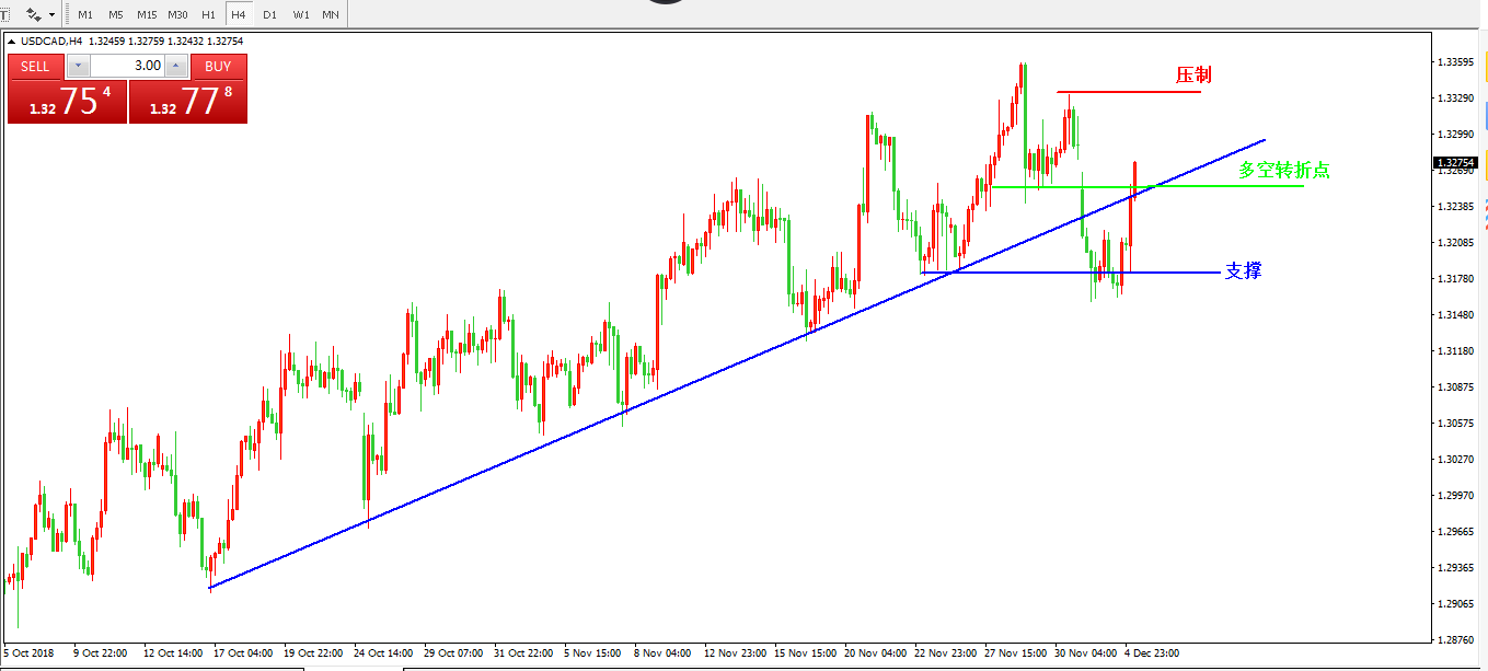 美元兑加元USDCAD4小时图