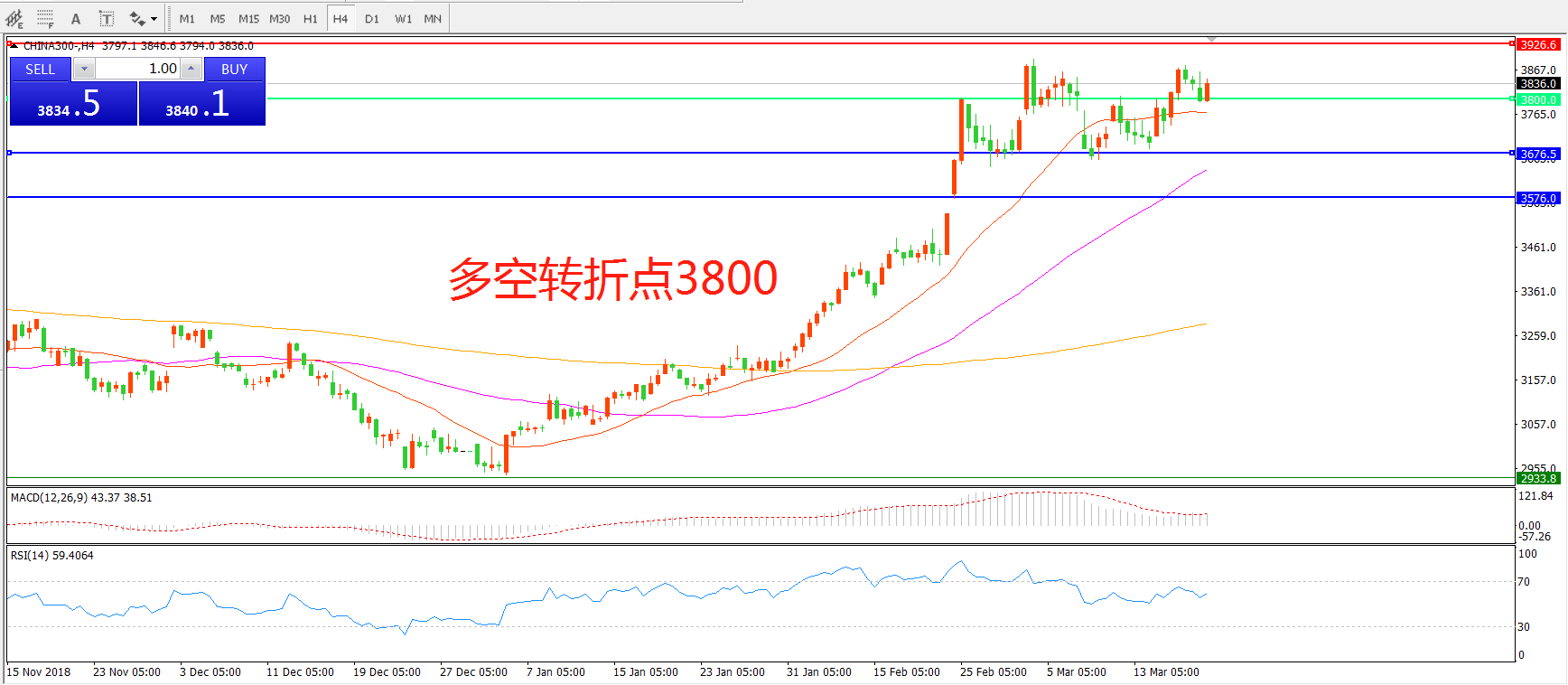 4小时图看,中华指数CHINA300中华指数高位宽幅调整,但整体形态偏多,均线系统呈多头排列, MACD红柱增加,RSI指标有拐头迹象,日内上行概率较大。