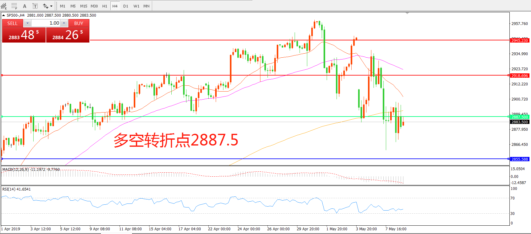 标普500SP500 4小时图