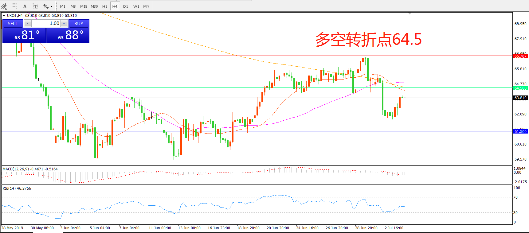 交易策略:在64.50之下看跌,目标61.50   57.00