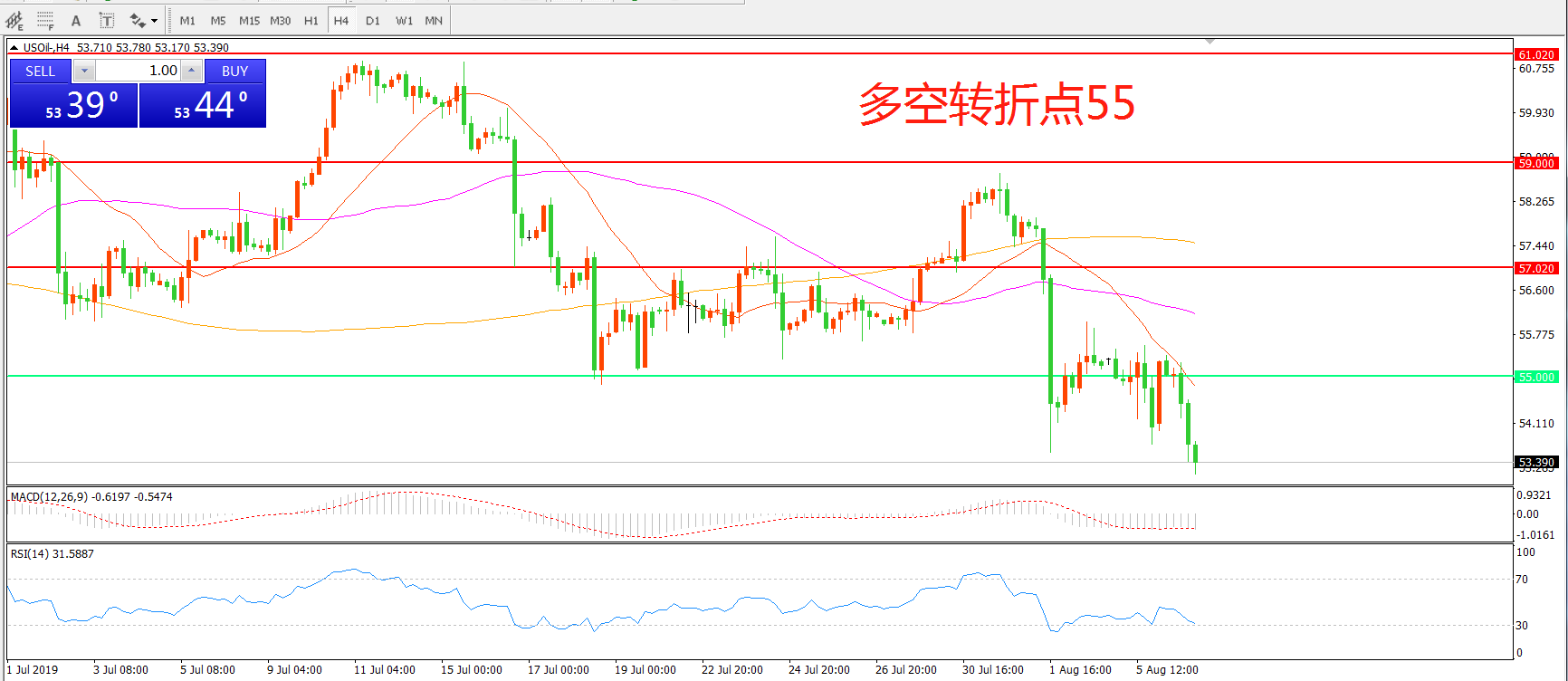 交易策略:在55.00之下看跌,目标51.50   49.50