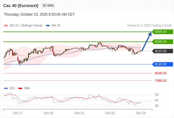 法国CAC指数期货 (Euronext) (X5) 当日内: 在8110.00之上,看涨。