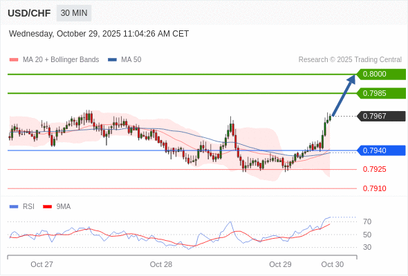 在 0.7940 之上,看涨,目标价位为 0.7985 ,然后为 0.8000 。