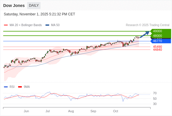 在 46770 之上,看涨,目标价位为 48000 ,然后为 49000 。