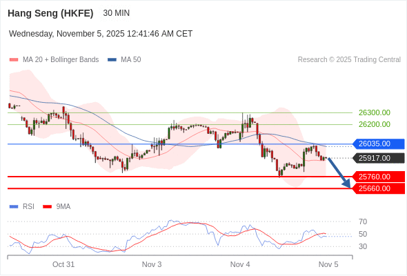 在 26035.00 之下,看跌,目标价位为 25760.00 ,然后为 25660.00 。