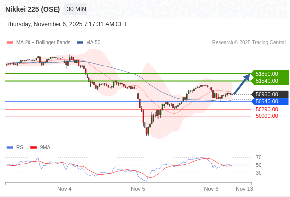日经225股指期货 (OSE) 当日内: 超短线(当日内)支撑位在50640.00附近。