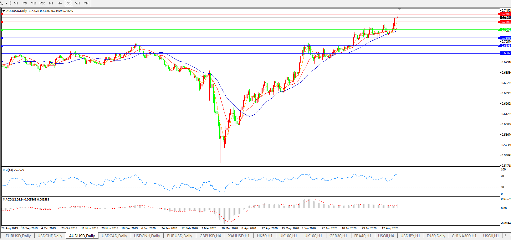 交易策略:0.7200上方看涨,目标0.7300、0.7400