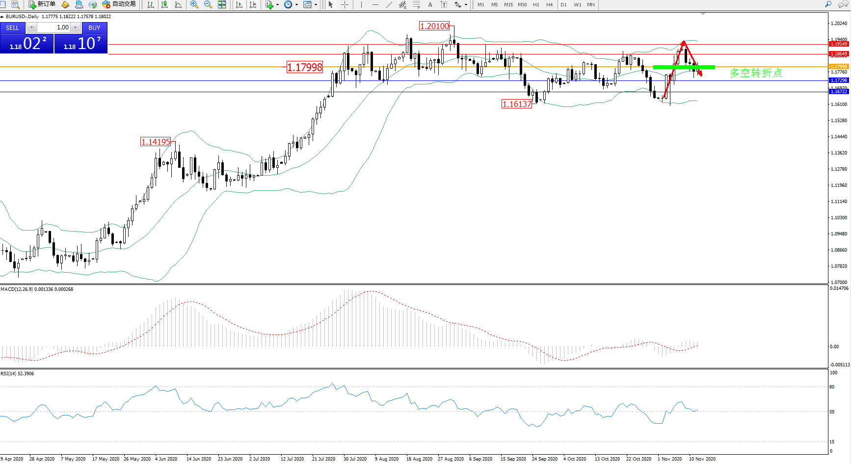 交易策略:1.17998上方看涨,目标1.18649、1.19149