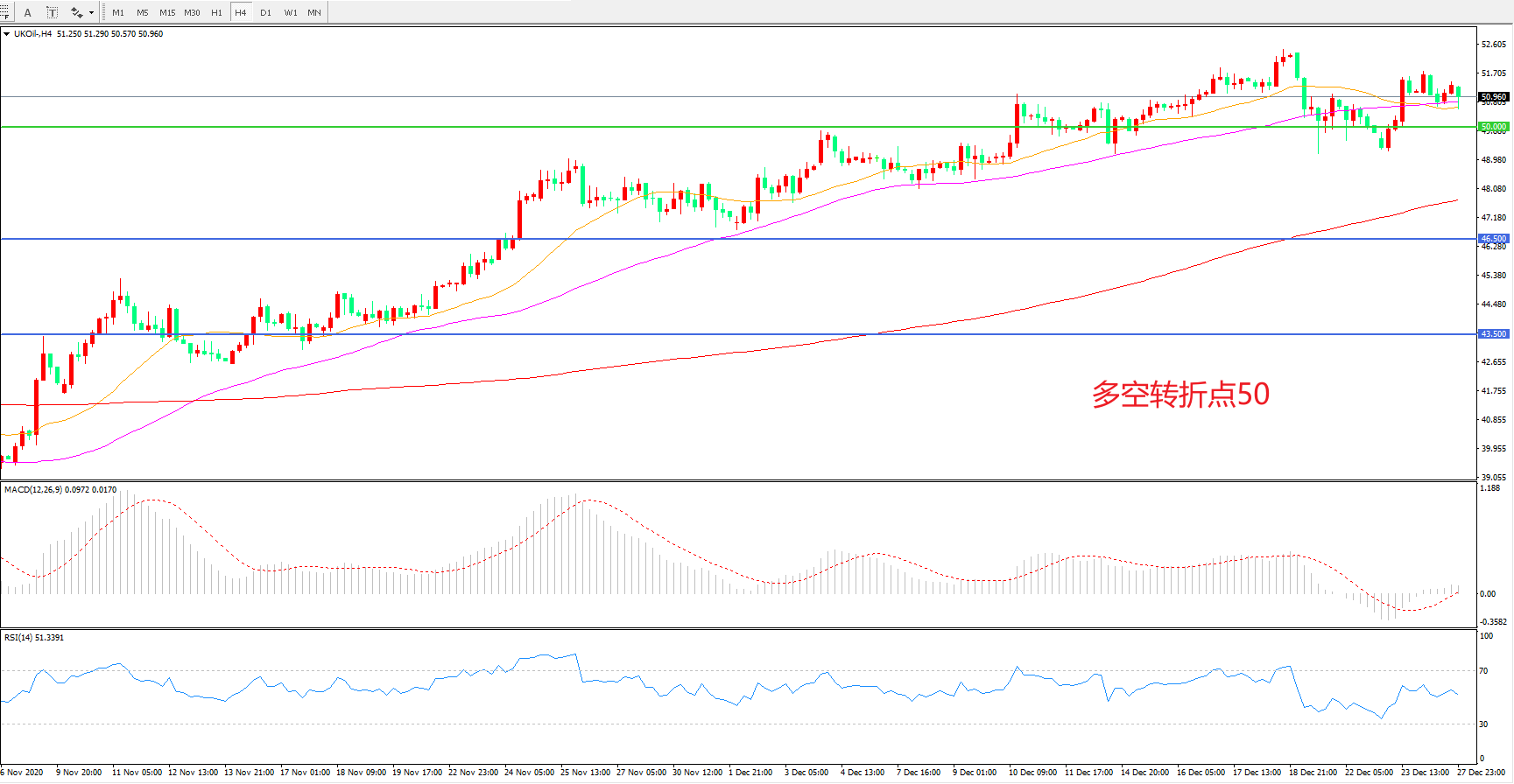交易策略:  在50.00之上看涨,目标53.00      57.00