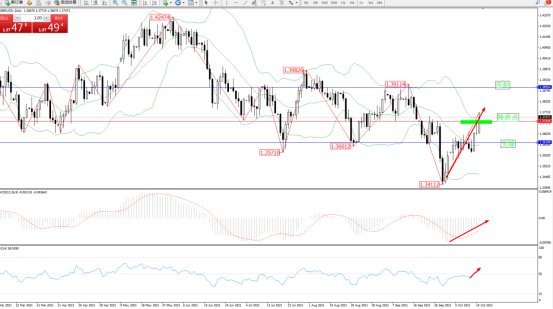 低位多头动力持续震荡上扬,触及布林带指标上轨附近节点后开始整理,短期多头动力有继续拉升态势,布林带指标呈收口走势后开始有张口迹象,MACD指标处于空头区域低位震荡缓慢上移中,RSI指标处于空头区域弱势整理后开始突破50均衡线进入多头区域持续震荡向上移动中,如图: