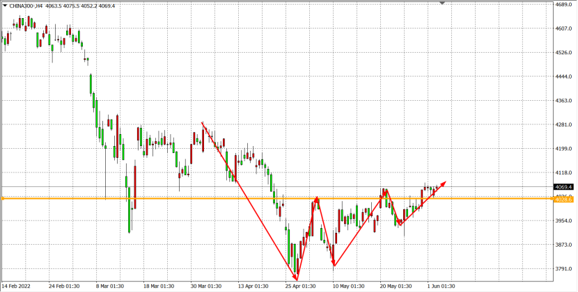 4小时图看,沪深300低点出现上抬,有较明显的底部上攻形态,并已企稳4028的支撑位,日内有望在此支撑上延续震荡上涨。
