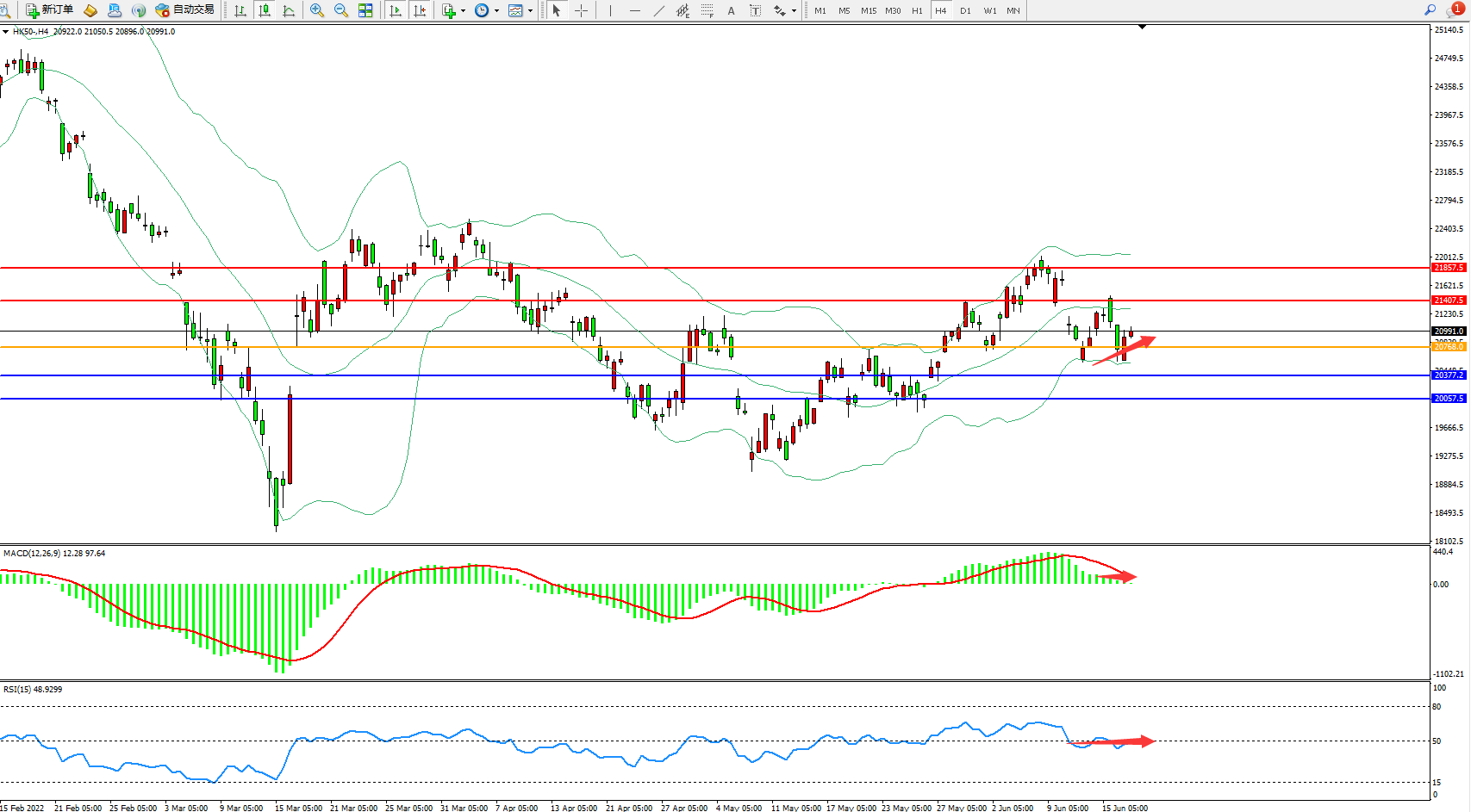 香港恒生指数6月17日(周五)收盘上涨229.57点,涨幅1.1%,报21075.0点;港股走出独立行情,三大指数低开高走,恒生科技指数涨2.33%亦收复4600点关口。新东方在线跌超12%止步9连涨,细价股教育股光大教育、成实外教育继续拉升;特斯拉概念股、煤炭股、石油股走低明显。