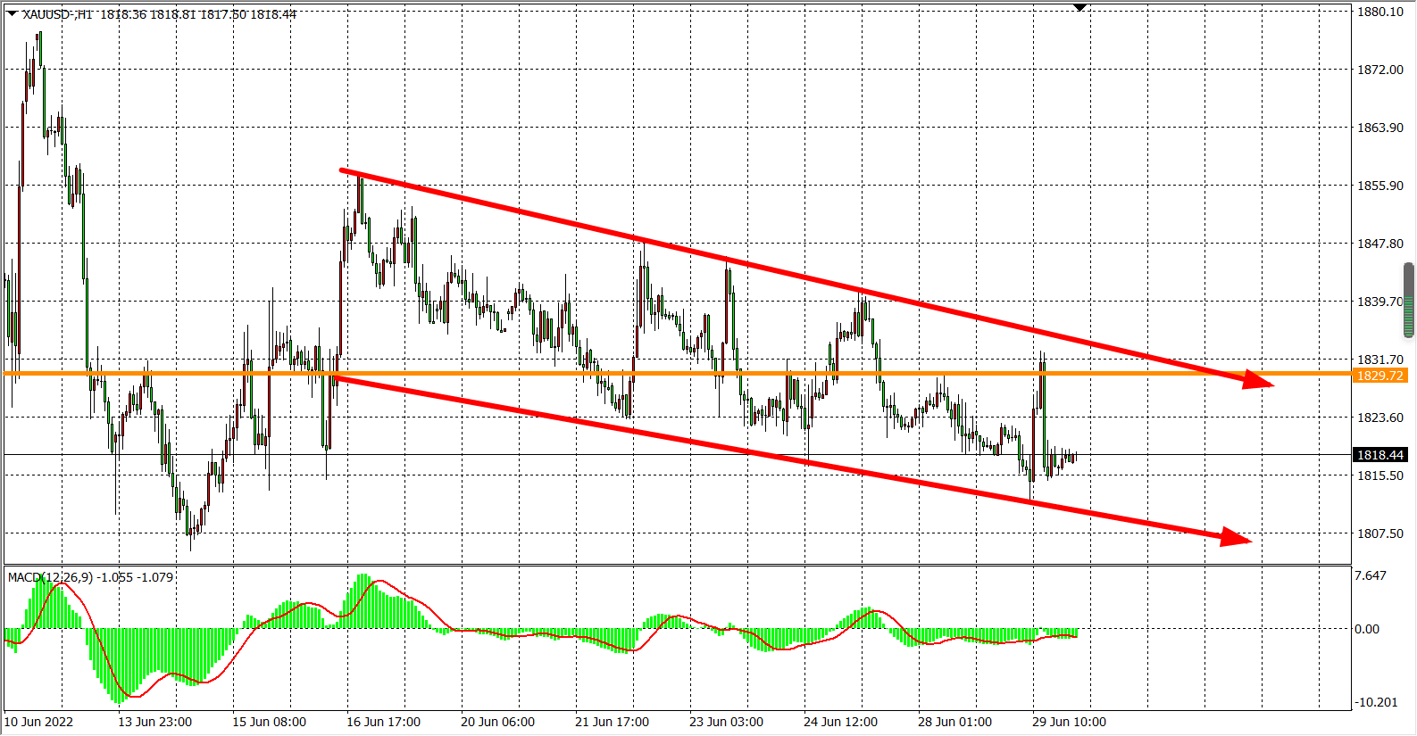 交易策略:在1830.00之下看跌,目标1810.00          1800.00