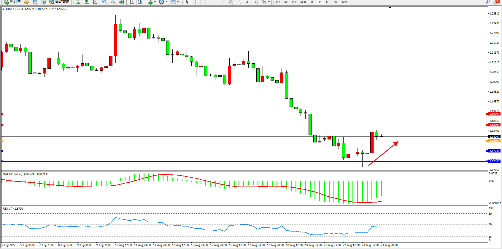 交易策略:1.18109上方看涨,目标1.18696、1.19099