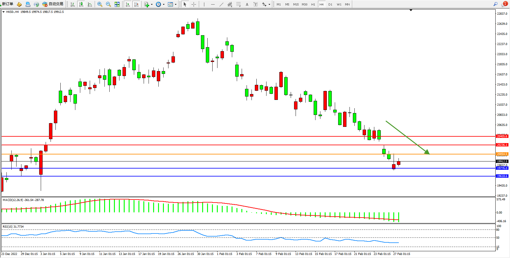 香港恒生指数2月27日(周一)收盘下跌66.53点,跌幅0.33%,报19943.51点;亚太股市全线杀跌,港股继续下跌,恒指跌0.33%失守2万点大关,国指、恒生科技指数分别跌0.5%和0.52%,二者皆抹平年内涨幅。大型科技股涨跌不一,快手涨2.5%,百度涨2%,小米、阿里巴巴、京东走低;南下资金逆势大幅净流入70.49亿港元,大市成交额为1124亿港元。港交所公告称,证券及期货事务监察委员会已批准修订中央结算系统一般规则及中央结算系统运作程序规则,以配合优化沪深港通交易日历安排,修订由2023年4月24日(星期一)起生效。