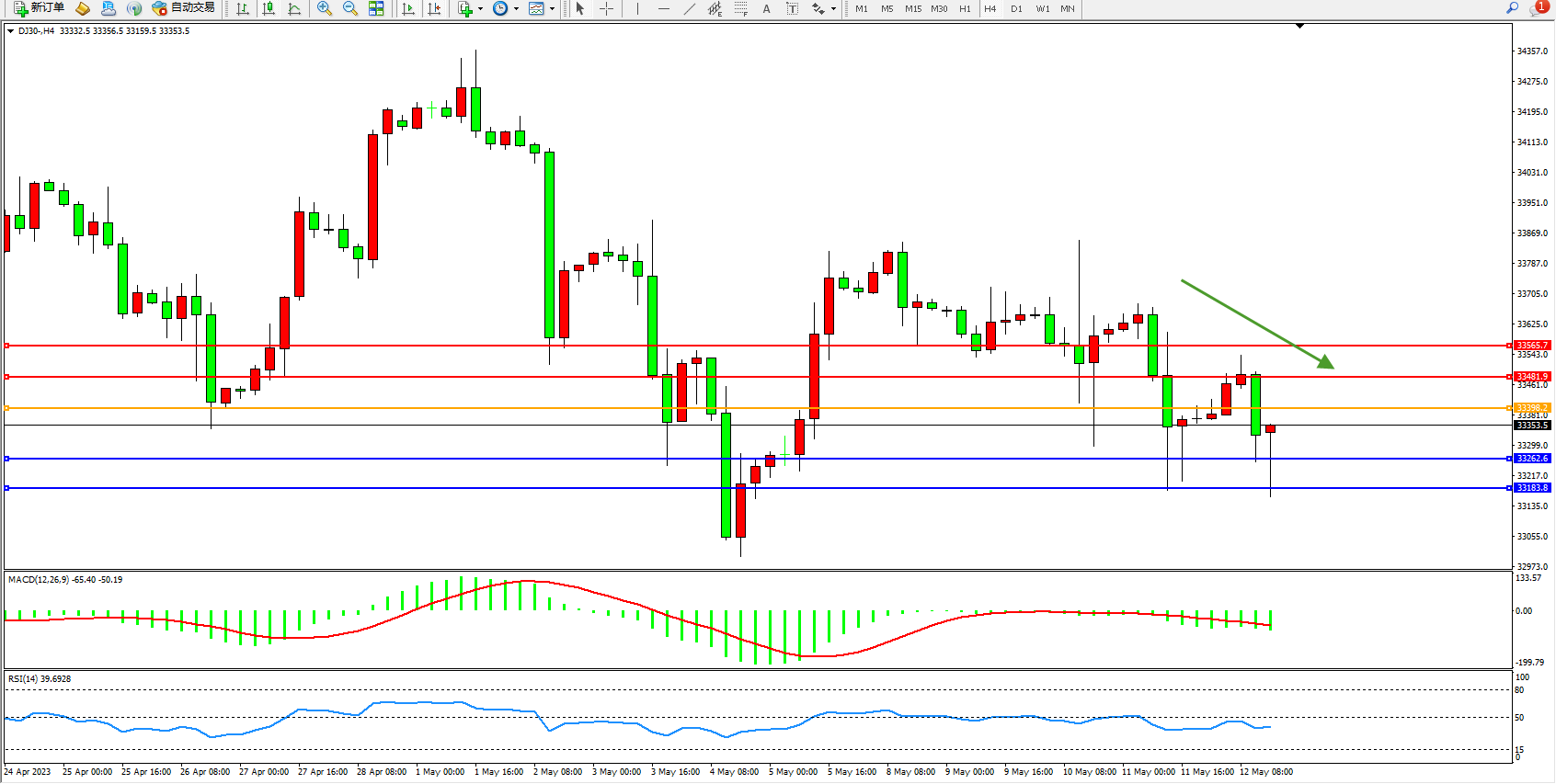 交易策略:33398下方看跌,目标33262 33183