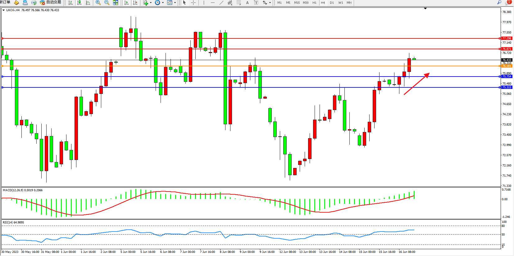布油维持76.433附近震荡,中国5月份炼油厂吞吐量同比增长15.4%,创历史第二高。科威特石油公司首席执行官表示,预计中国对石油的需求在今年下半年将继续以有把握的速度攀升。