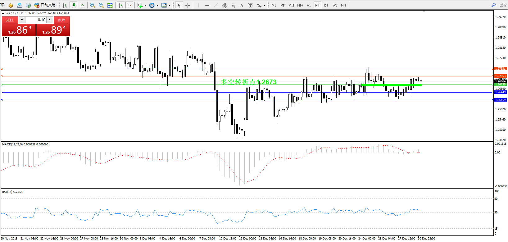 交易策略:1.2673上方看涨,目标12705、1.2733